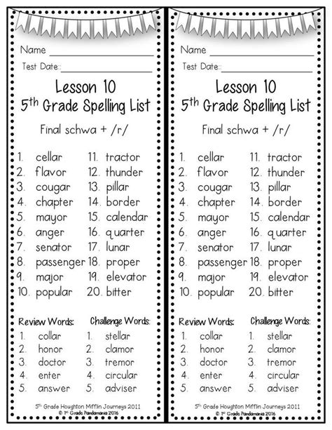 3rd 4th and 5th grade spelling lists
