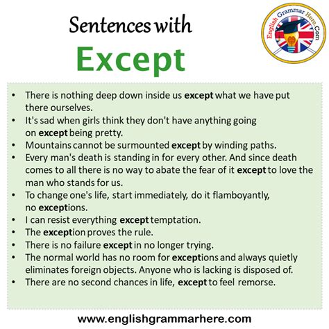 except meaning in english with example