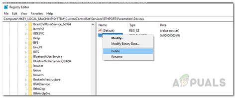 remove bluetooth device windows 10 registry